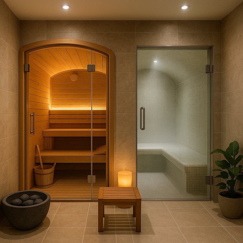Saunas use dry heat, while steam rooms provide moist heat. Both offer relaxation and wellness benefits, depending on your preference.